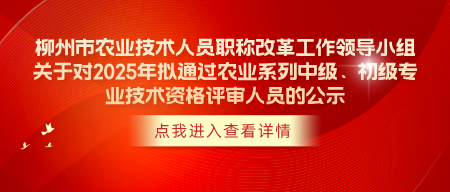 柳州市农业技术人员职称改革工作领导小组关于对2025年拟通过农业系列中级、初级专业技术资