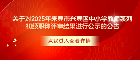 关于对2025年来宾市兴宾区中小学教师系列初级职称评审结果进行公示的公告