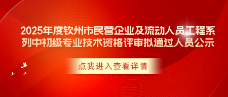 2025年度钦州市民营企业及流动人员工程系列中初级专业技术资格评审拟通过人员公示