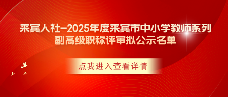 近日, 来宾人社 公众号 发布了 《2025年度来宾市中小学教师系列副高级职称评审拟通过人员名单公示》 ,一起来看看本次通过的人员名单吧! 职称公示名单查询