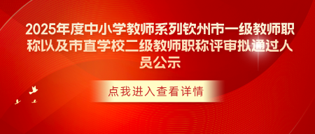 2025年度中小学教师系列钦州市一级教师职称以及市直学校二级教师职称评审拟通过人员公示